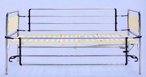 Questo prodotto, frutto di una scelta accurata di materiali, viene costruito con acciaio cromato con agganci alle spalliere del letto con gancio a molla. Data la particolare resistenza alla corrosione, permette una lunga durata di esercizio senza bisogno di alcuna manutenzione. |